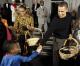 "Президент, первая леди и первая бабушка страны (мать Мишель Обамы) Мариан Робинсон, широко улыбаясь, в течение примерно получаса... раздавали на ступенях Белого дома сладости - изготовленные в Белом доме конфеты M&Ms, пирожные, и, конечно, сухофрукты", - говорится в сообщении пула, переданном РИА Новости.